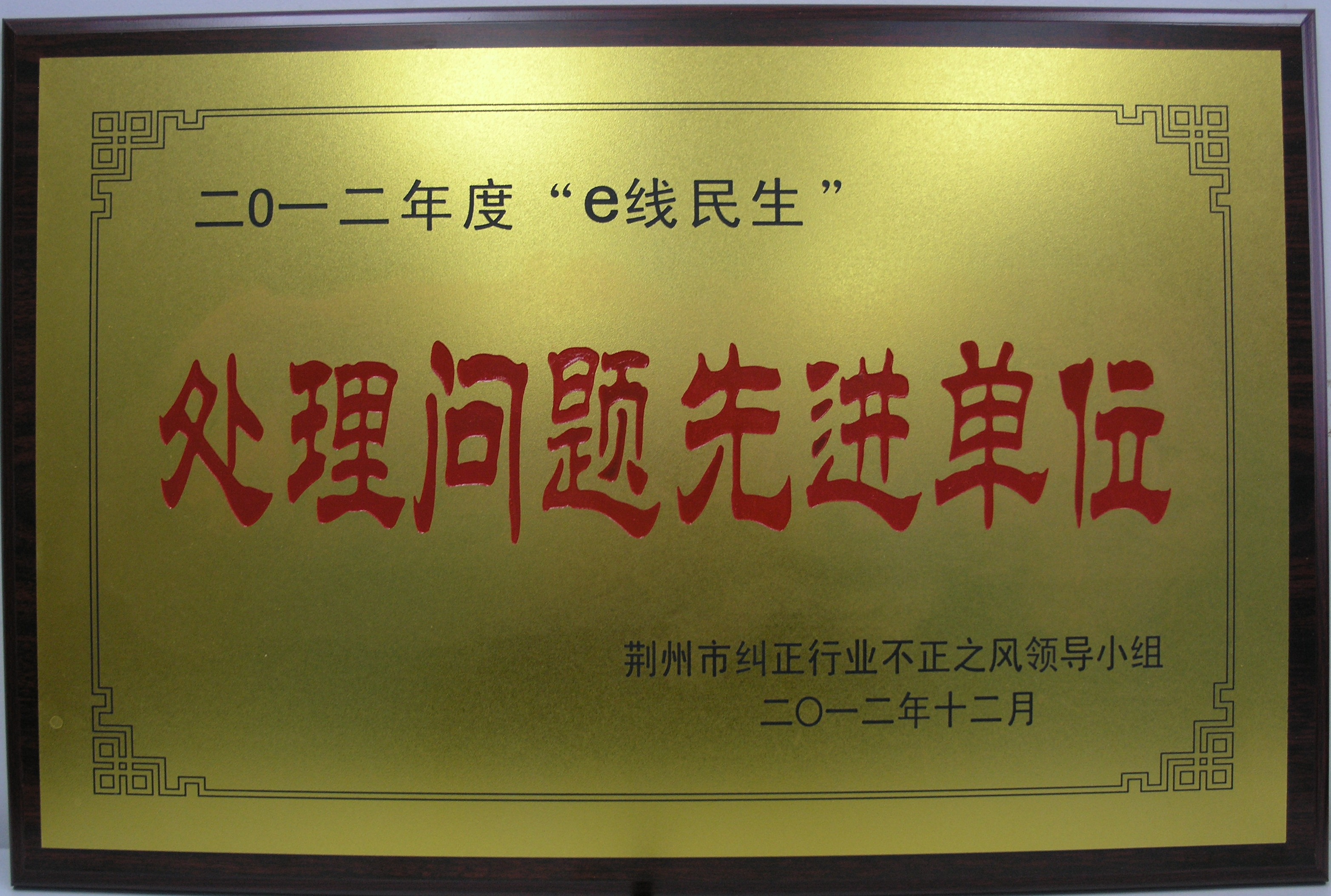 荆州市2012年度e线民生处理问题先进单位(市级)