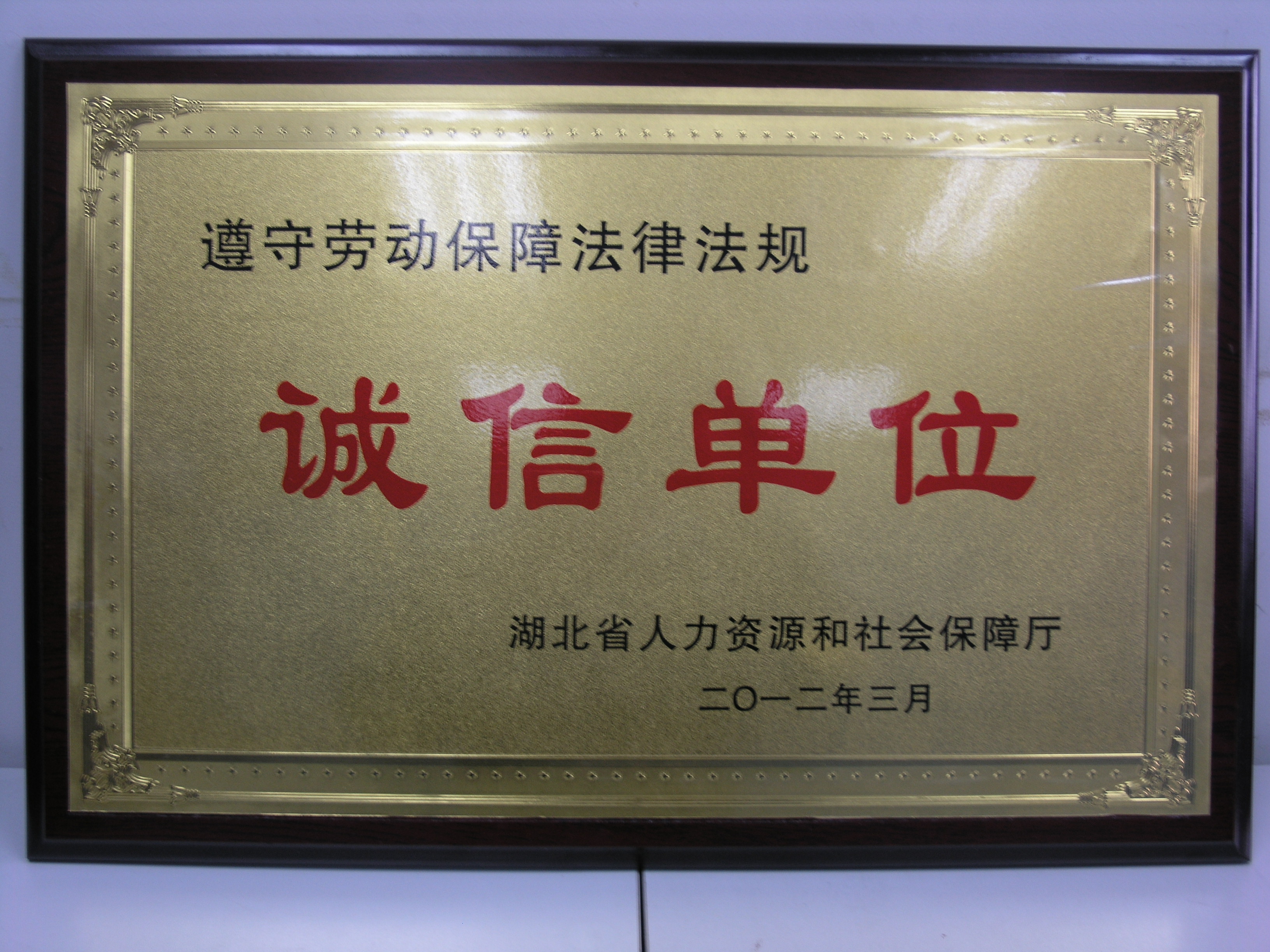 湖北省遵守劳动保障法律法规诚信单位(省部级)