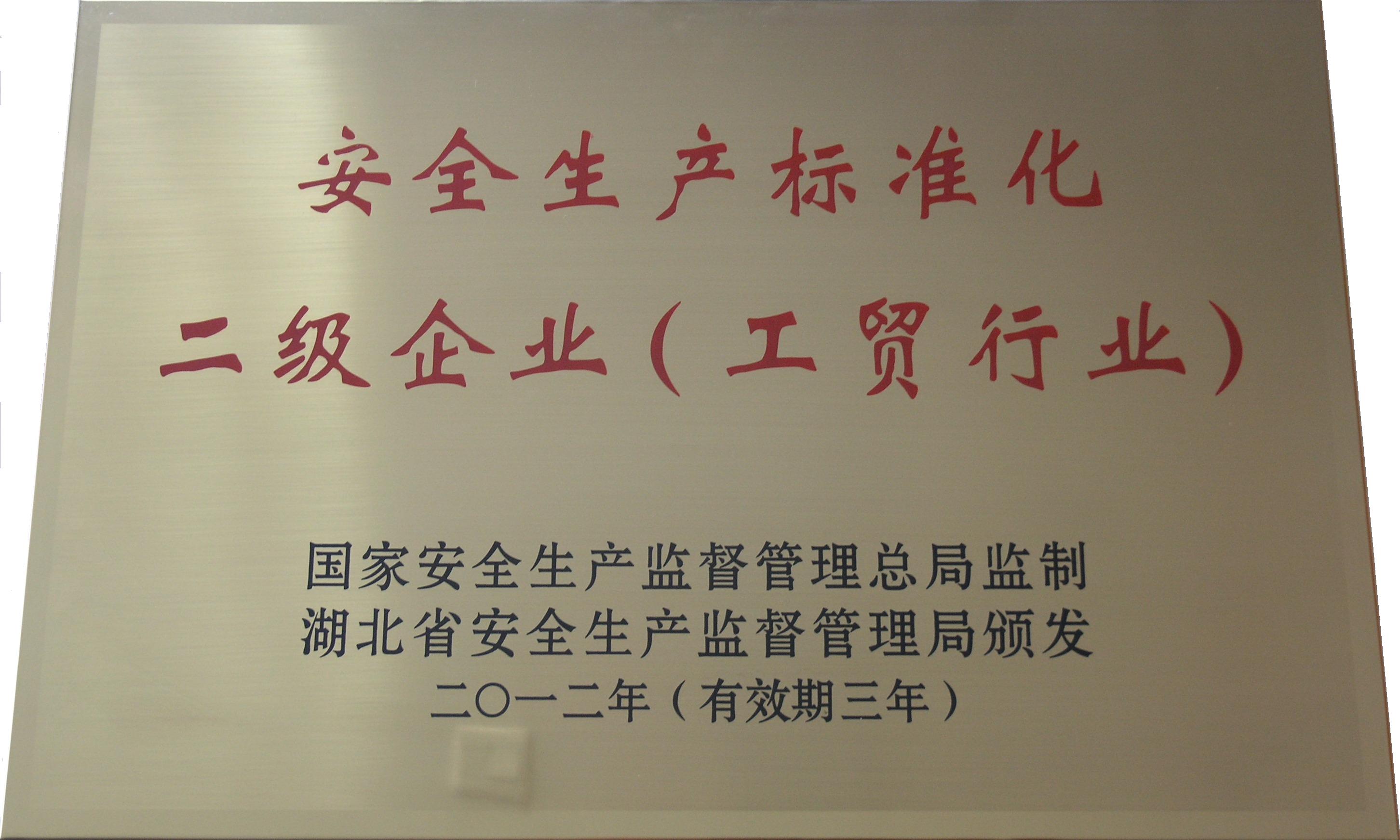 湖北省安全生产标化二级企业(省部级)