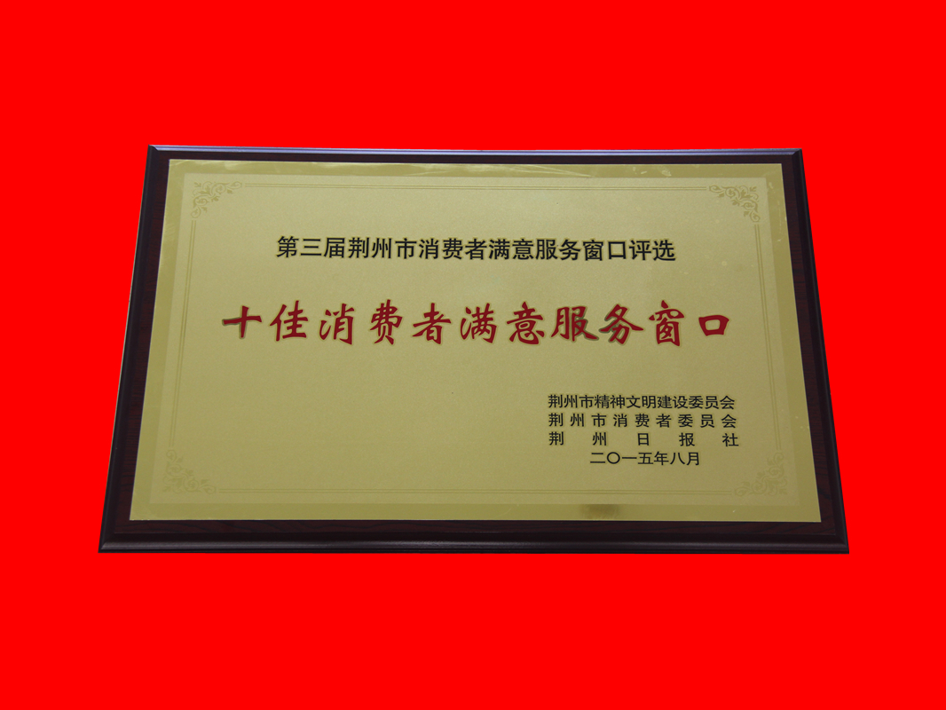 第三届荆州市消费者满意服务窗口评选十佳消费者满意服务窗口