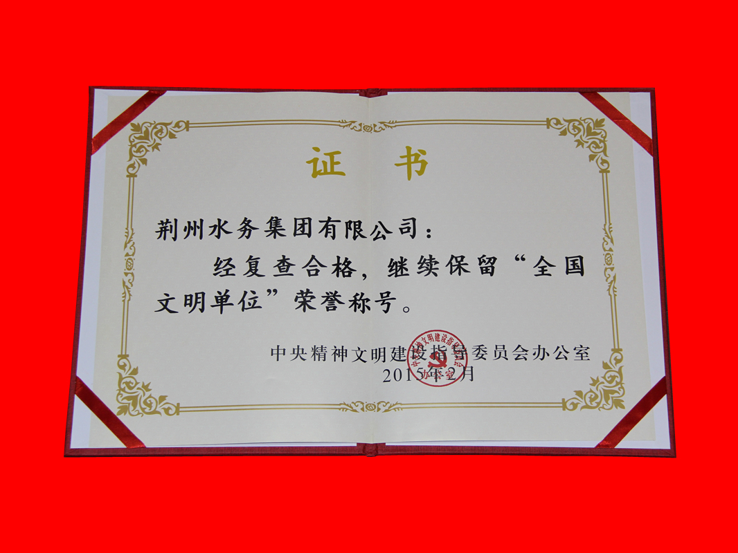 全国文明单位证书