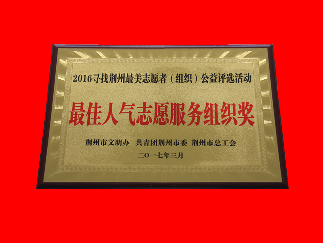 荆州市2016年最佳人气志愿服务组织奖