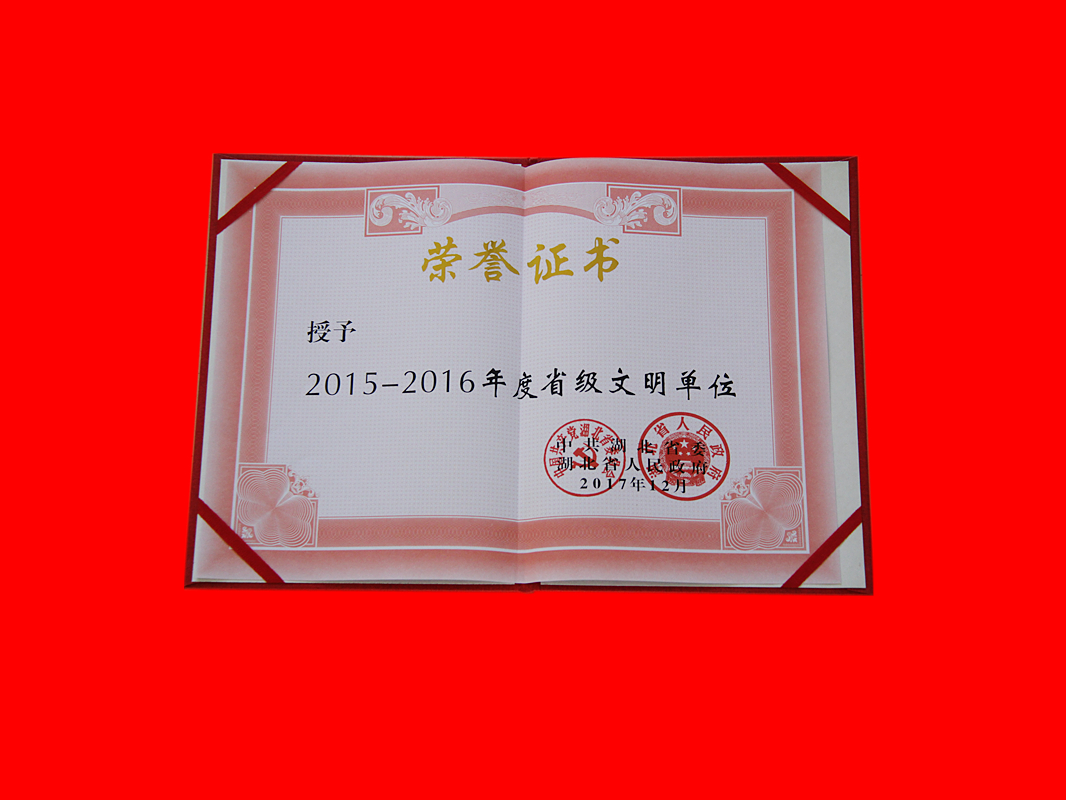 湖北省2015——2016年文明单位 证书