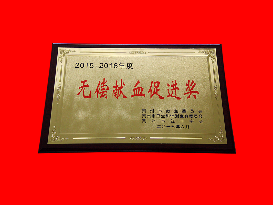 荆州市2015——2016年度无偿献血促进奖
