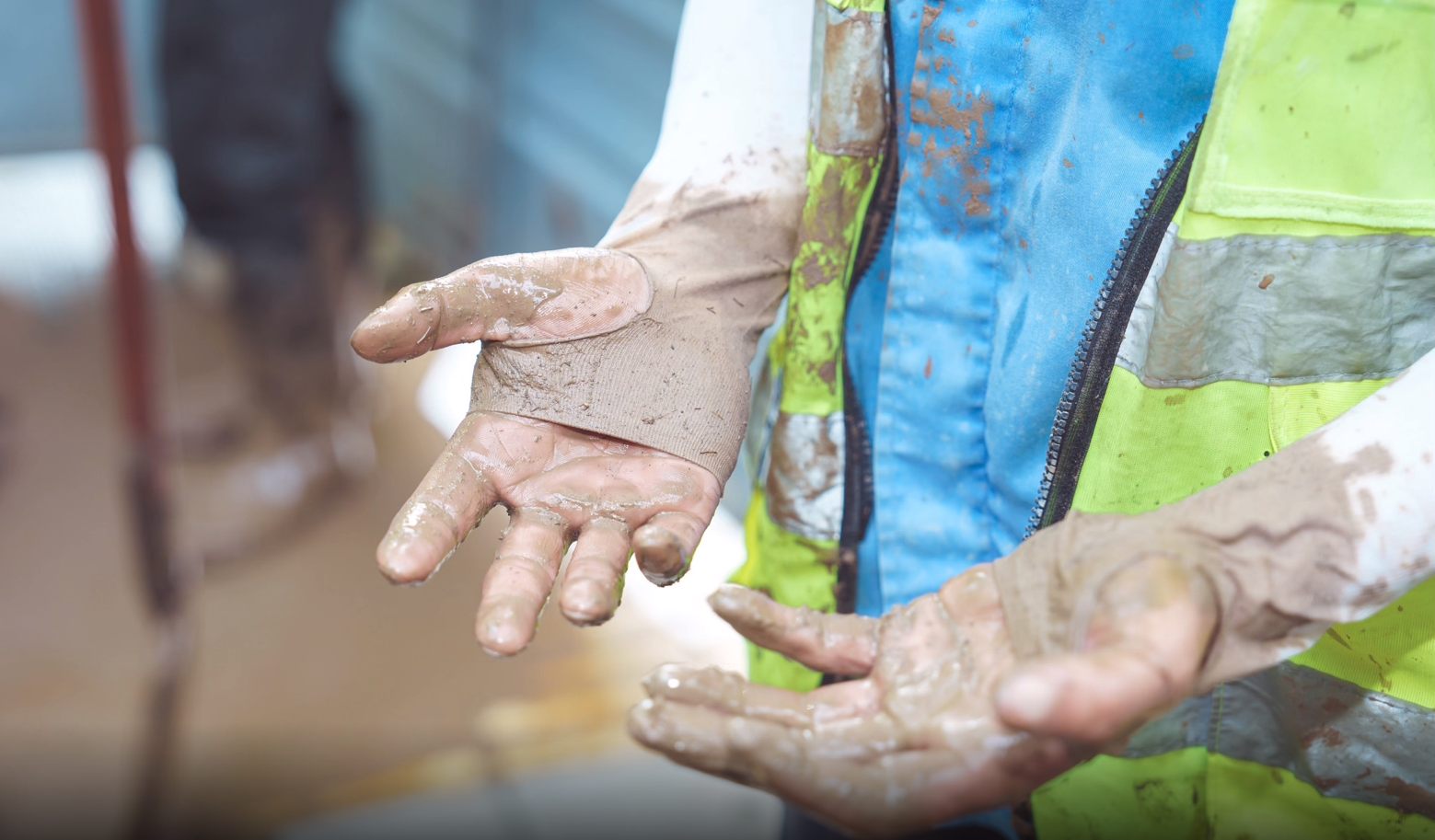 這濕透的衣褲、裹滿泥水的腳......讓人心疼!