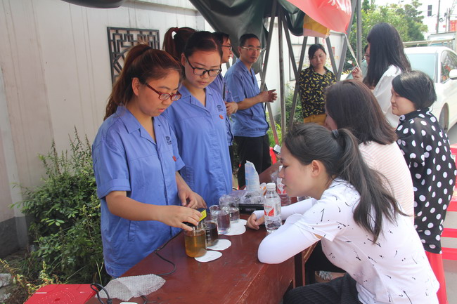 根據(jù)群眾反應(yīng),市場(chǎng)上有些不良商家推銷凈水器時(shí)說:“經(jīng)科學(xué)儀器現(xiàn)場(chǎng)檢測(cè),自來(lái)水不干凈,長(zhǎng)期飲用會(huì)致病”、“自來(lái)水有雜質(zhì)……”這些聳人聽聞的話,加上售賣人員所呈現(xiàn)的實(shí)驗(yàn)顯示,自來(lái)水中會(huì)產(chǎn)生褐色、墨綠色絮狀物,讓很多居民對(duì)自來(lái)水產(chǎn)生了畏懼感。在黨支部書記劉薇和黨小組組長(zhǎng)羅傳斌的帶領(lǐng)下,小組成員為居民現(xiàn)場(chǎng)答疑解惑,宣講水質(zhì)相關(guān)知識(shí),現(xiàn)場(chǎng)解釋這些褐色、墨綠色絮狀物其實(shí)并非是自來(lái)水中的雜質(zhì),而是水中金屬離子電解反應(yīng)后的生成物,是普通的電化學(xué)反應(yīng)。