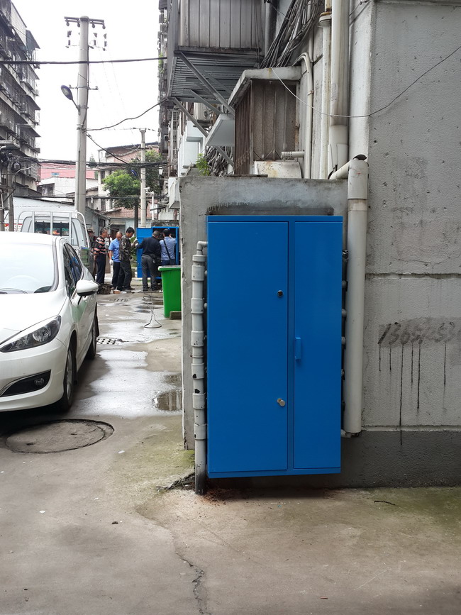 沙市植物園小區(qū)修建較早,小區(qū)里的供水表箱經(jīng)過十幾年的風(fēng)吹日曬,材質(zhì)開始銹蝕,不僅影響小區(qū)環(huán)境,也給水表保護帶來安全隱患。為扮靚城市面貌,助推“創(chuàng)衛(wèi)”工作,6月29日產(chǎn)業(yè)支部第一黨小組的黨員們來到小區(qū),在組長易繼剛的帶領(lǐng)下,首先對小區(qū)內(nèi)的舊表箱進行拆除,當天雖然下著大雨,但并沒有影響工作的開展,黨員們冒雨對銹蝕的表箱一個個拆除,并對表箱內(nèi)的水表進行清理。這些水表被居民用破舊衣物隨意包扎,由于時間較久,里面灰土沉積,黨員們彎著腰對包扎物進行了清理,同時將塵土清掃干凈,經(jīng)過一天的努力,完成了小區(qū)銹蝕表箱的拆除任務(wù)。30日,黨員們又繼續(xù)對新表箱進行了安裝,新表箱密封性較好,避免了水表的日曬雨淋,也起到防塵防凍作用。當干凈漂亮的藍色水箱整齊的懸掛在小區(qū)墻面時,引來了居民的不住稱贊。
