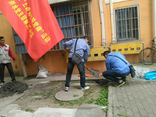 4月26日,江漢客戶(hù)服務(wù)中心的五中片區(qū)的客戶(hù)經(jīng)理劉艷在抄表時(shí),接到崇文家和園兩位老人的反映:5棟一單元有七戶(hù)用戶(hù)表后的水管常年裸露在外面,擔(dān)心下雪凍裂,也擔(dān)心來(lái)往行人車(chē)輛壓斷水管。劉艷立刻到現(xiàn)場(chǎng)查看,原來(lái)安裝時(shí)受實(shí)地環(huán)境的影響,導(dǎo)致表后至入戶(hù)的那段水管掩埋在地表,長(zhǎng)年的風(fēng)吹雨淋,使得七位用戶(hù)表后的水管裸露在外。由于該處常有行人及車(chē)輛來(lái)往,存在安全隱患??紤]到崇文家和園是荊州市廉租房小區(qū),租戶(hù)多,人員流動(dòng)性大,而且居住的都是經(jīng)濟(jì)困難戶(hù)、孤寡老人和殘疾人等,小區(qū)沒(méi)有物業(yè)管理公司入駐管理。經(jīng)過(guò)商議,第三黨小組決定發(fā)動(dòng)黨員同志對(duì)該處用水隱患開(kāi)展一次義務(wù)修復(fù)。在漢江客服經(jīng)理劉翔的帶領(lǐng)下,黨員同志們開(kāi)始分頭準(zhǔn)備。有的去買(mǎi)水泥和沙,安排車(chē)輛拖運(yùn)至現(xiàn)場(chǎng);有的去準(zhǔn)備水桶提水,有的準(zhǔn)備施工工具。中午兩點(diǎn)半,6位黨員同志一齊動(dòng)手,將裸露在外的水管用水泥封好,消除了用水隱患。小區(qū)住戶(hù)連聲表示感謝,稱(chēng)贊荊州水務(wù)辦事效率高,黨員思想覺(jué)悟高。