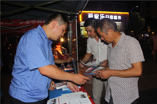 晚上6:30,關(guān)廟廣場(chǎng)人潮涌動(dòng),氣氛熱烈,精彩的文藝匯演吸引了數(shù)百位市民到現(xiàn)場(chǎng)觀看。臺(tái)上節(jié)目精彩紛呈,臺(tái)下服務(wù)熱情正濃。荊州水務(wù)集團(tuán)的黨員志愿服務(wù)隊(duì)為前來(lái)咨詢的居民詳細(xì)答疑解惑,對(duì)于水表分戶、繳納水費(fèi)等問(wèn)題耐心解答,并為居民主動(dòng)講解用水小妙招和節(jié)水小竅門(mén)。志愿隊(duì)員們還拿出手機(jī),現(xiàn)場(chǎng)為居民介紹支付寶繳納水費(fèi)的方式,許多居民現(xiàn)場(chǎng)學(xué)會(huì)了網(wǎng)上交費(fèi)。