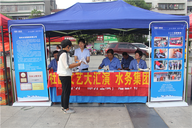 9月9日,由市委宣傳部、市文廣新局主辦,荊州電視臺(tái)、荊州市群眾藝術(shù)館、荊州各轄區(qū)居委會(huì)承辦的“喜迎十九大 百姓頌黨恩”2017年荊州市社區(qū)文藝大匯演與義務(wù)服務(wù)活動(dòng)在關(guān)廟廣場(chǎng)舉行。荊州水務(wù)集團(tuán)黨員志愿服務(wù)隊(duì)走進(jìn)南門(mén)社區(qū),為社區(qū)居民提供細(xì)致周到的供水服務(wù)。