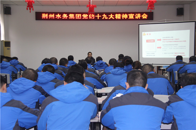 荊州水務(wù)集團總經(jīng)理助理葛世玉主持報告會,他表示,黨的十九大精神已在公司掀起一股學(xué)習(xí)熱潮,各黨支部堅持每周利用學(xué)習(xí)陣地與業(yè)余時間,積極開展學(xué)習(xí)與實踐活動。聆聽此次宣講后,黨員干部還要帶頭在職工中進(jìn)行宣貫,要將黨的十九大精神貫徹實踐活動與安全生產(chǎn)和優(yōu)質(zhì)供水的本職工作相結(jié)合,每一名黨員、每一名員工都要立足本職工作,爭當(dāng)履職盡責(zé)的表率、優(yōu)質(zhì)服務(wù)的模范,全力促進(jìn)城市供水事業(yè)的新發(fā)展。