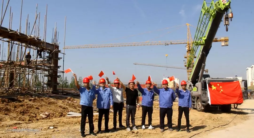 建設(shè)工地上國(guó)旗飄揚(yáng)