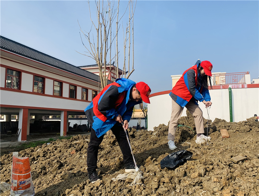 春風(fēng)催新綠,植樹正當(dāng)時(shí)。此時(shí)的紀(jì)南水廠正在進(jìn)行廠區(qū)綠化施工,青年志愿者們?cè)诂F(xiàn)場專業(yè)人員的指導(dǎo)下開展植樹活動(dòng)?;顒?dòng)現(xiàn)場,大家干勁十足、配合默契,有的扛著鐵鍬,有的提著水桶,挖坑、扶苗、培土、踩實(shí)、澆灌.....每個(gè)環(huán)節(jié)都銜接有序,活動(dòng)現(xiàn)場熱火朝天。在大家的歡聲笑語中,一株株銀杏昂然挺立,映襯在水廠古韻風(fēng)情的建筑間,格外美麗。隨后,大家還對(duì)廠園的垃圾進(jìn)行了清理。