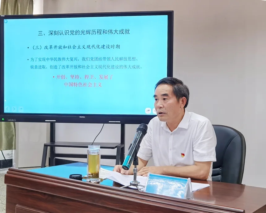 劉洋同志從深刻認(rèn)識(shí)“七一”重要講話的重大意義、深刻認(rèn)識(shí)全面建成小康社會(huì)的偉大成就和歷史意義、深刻認(rèn)識(shí)黨的光輝歷程和偉大成就、深刻認(rèn)識(shí)偉大建黨精神的深刻內(nèi)涵和時(shí)代價(jià)值、深刻認(rèn)識(shí)以史為鑒、開(kāi)創(chuàng)未來(lái)的根本要求、深刻認(rèn)識(shí)習(xí)近平總書(shū)記發(fā)出的偉大號(hào)召六個(gè)方面進(jìn)行了詳細(xì)的闡述。引導(dǎo)大家以學(xué)習(xí)貫徹“七一”重要講話精神為契機(jī),豐富拓展黨史學(xué)習(xí)教育的內(nèi)涵,推動(dòng)黨史學(xué)習(xí)教育往深里走、往實(shí)里走。要求大家緊密聯(lián)系工作實(shí)際,把學(xué)習(xí)“七一”重要講話精神的成果轉(zhuǎn)化為奮進(jìn)新征程、建功新時(shí)代的實(shí)際行動(dòng)。