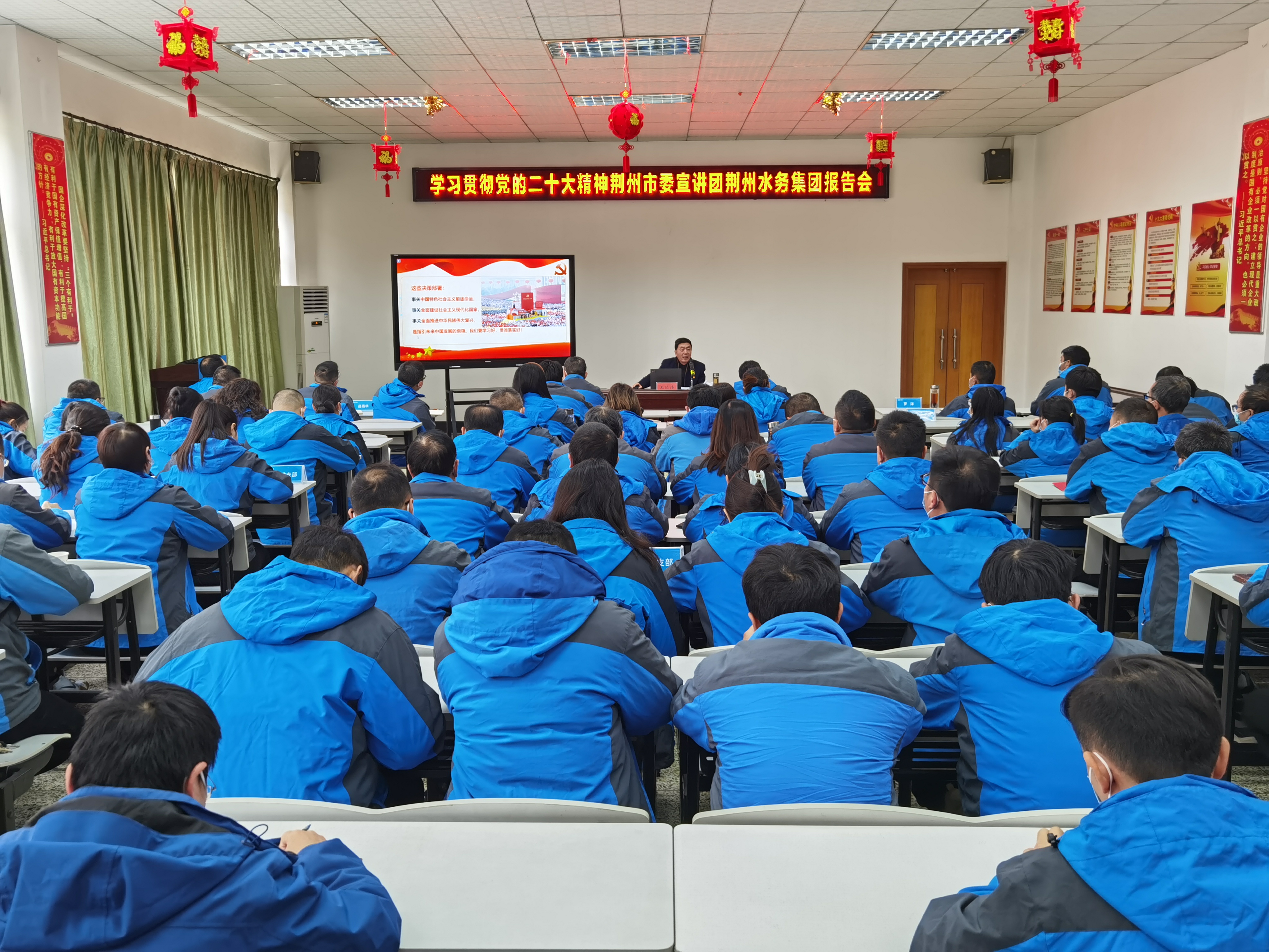 為深入學(xué)習(xí)宣傳貫徹黨的二十大精神,12月2日,荊州水務(wù)集團(tuán)有限公司特邀請(qǐng)中共荊州市委黨校原副校長(zhǎng)、調(diào)研員王遠(yuǎn)浩教授為公司全體黨員干部進(jìn)行黨的二十大報(bào)告精神宣講,公司黨委班子成員、全體黨員、干部130余人參加了此次宣講活動(dòng)。