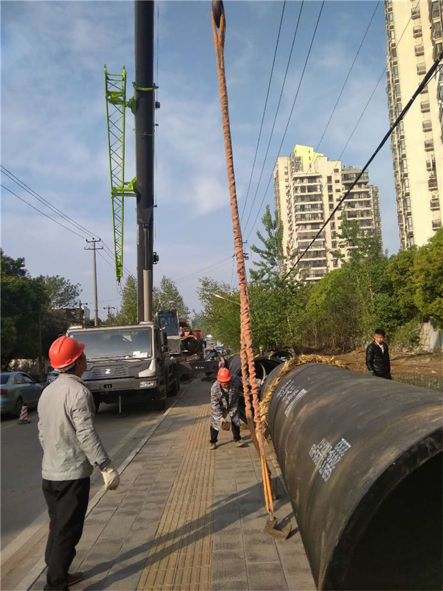 在三灣路供水主管建設(shè)的施工現(xiàn)場,工程施工人員正在緊張忙碌著。該管線原為DN1000mm的水泥砼管,由于超過使用年限且隨著用水需求的增長,現(xiàn)已無法滿足要求,故該工程是在原DN1000mm水泥砼管旁再鋪設(shè)一條安全可靠性更高的DN1200mm球墨鑄鐵管。