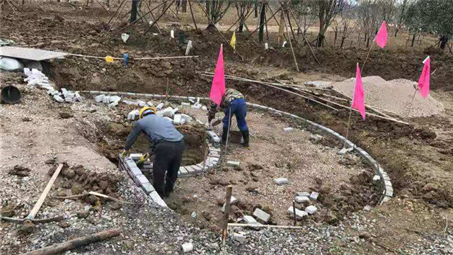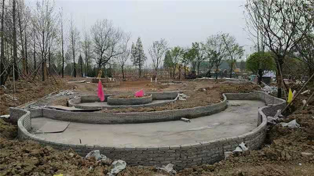 水電部分完成:給排水管道開挖及回填,水池、人工湖、園路給排水管道敷設,水電管道預埋,水池及園區(qū)電氣管道預埋(80%)。