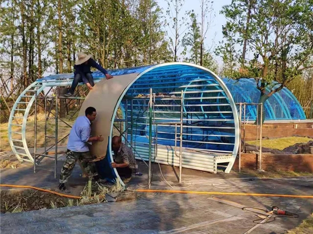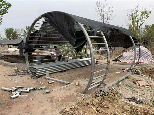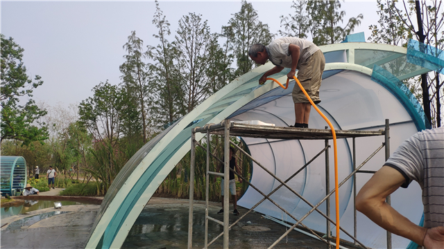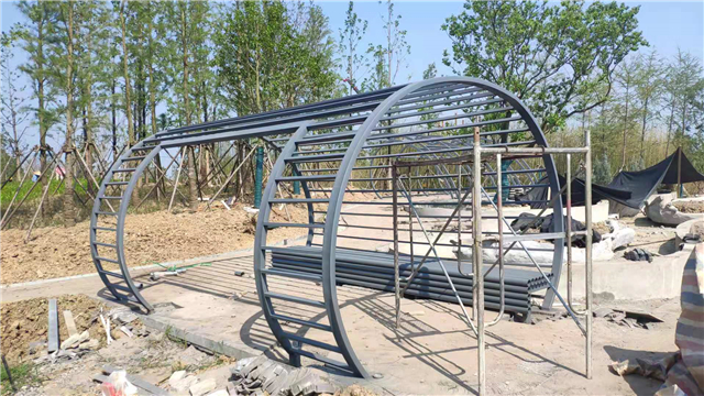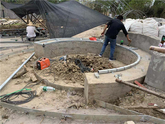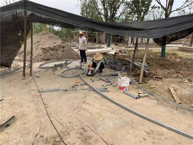 6月3日 水中云盆制作中,休憩亭結構現(xiàn)場焊接