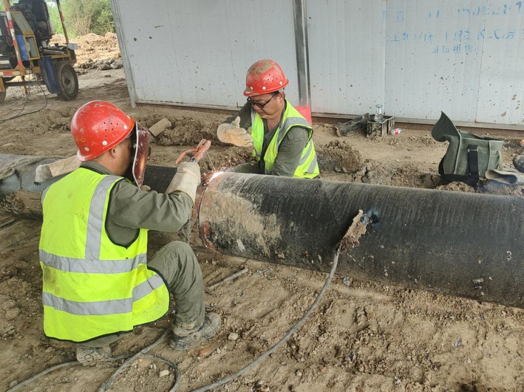 在復(fù)興大道西延線供水管網(wǎng)遷改項目的施工現(xiàn)場,鼎鑫源工程公司的施工員正在進行鋼管焊接與安裝作業(yè)。該工程位于復(fù)興大道與引江濟漢渠相交處,為配合復(fù)興大道跨江漢運河橋項目建設(shè),荊州水務(wù)集團出資98萬元,對影響新建橋梁施工的給水管道進行遷移改造,避開橋梁樁基,共鋪設(shè)DN400mm鋼管200米、DN600mm鋼管270米,遷移后與現(xiàn)狀管道兩端進行連通,保障沿線居民及生產(chǎn)企業(yè)的正常供水。