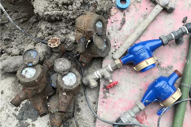 此次水表、表箱整改方案分為三個(gè)步驟:拆除原水表井,將水表移至安全距離范圍內(nèi),為下水管道開挖、安裝預(yù)留作業(yè)面;安裝臨時(shí)供水管道,保障整改期間居民的正常用水;下水管道安裝完畢后,將水表重新安裝到位并砌筑水表井。但施工時(shí)發(fā)現(xiàn),因被污水浸泡時(shí)間較長(zhǎng),水表、閥門等銹蝕情況非常嚴(yán)重,這不僅增加了施工難度,還經(jīng)常發(fā)生接頭、閥門斷裂漏水等現(xiàn)象。