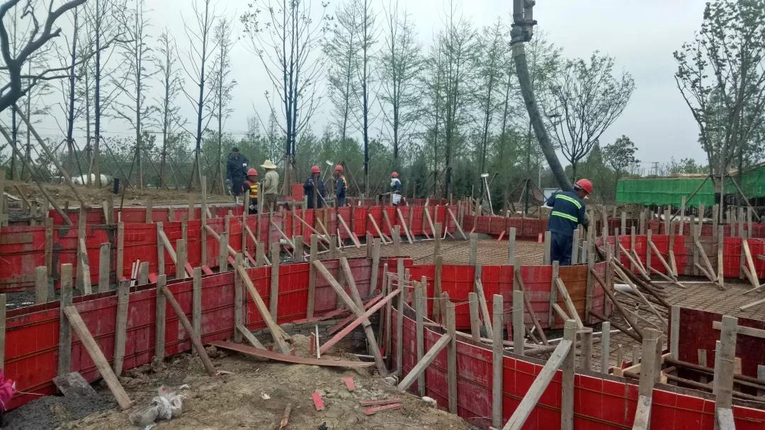 經(jīng)過(guò)兩個(gè)月的緊張施工,目前荊州水務(wù)集團(tuán)展園完成喬木種植總量的90%,在高溫季節(jié)來(lái)臨之前完成了所有大型喬木的栽植,有效保證了植物的成活率及最終植物景觀效果;園建項(xiàng)目已完成跌水池基礎(chǔ)及結(jié)構(gòu)砼澆筑、人工湖墊層澆筑及池壁磚胎膜砌筑、園路開(kāi)挖及碎石回填、展廳基礎(chǔ)開(kāi)挖、景墻基礎(chǔ)開(kāi)挖及墊層澆筑;水電項(xiàng)目已完成管道預(yù)埋總量的90%。