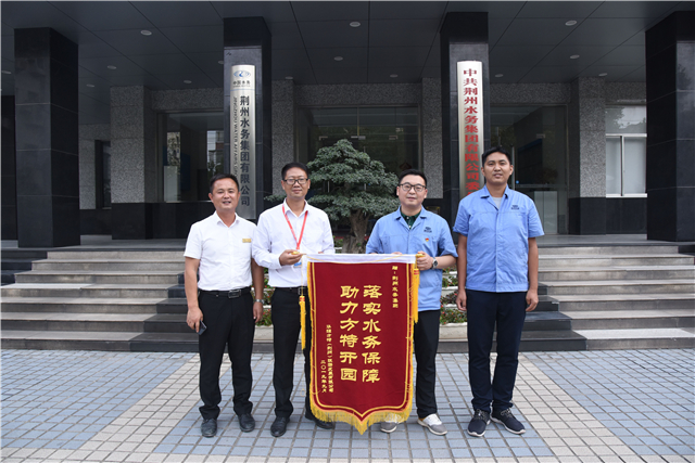 9月24日,荊州華強(qiáng)方特文化旅游發(fā)展有限公司負(fù)責(zé)人來(lái)到荊州水務(wù)集團(tuán),將一面印有“落實(shí)水務(wù)保障 助力方特開(kāi)園”燙金大字的錦旗送到集團(tuán)公司副總經(jīng)理葛世玉手中,感謝集團(tuán)公司為該企業(yè)開(kāi)園提供可靠的供水保障。