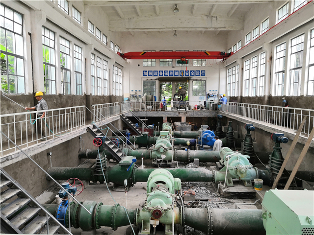 南湖水廠送水泵站始建于上世紀(jì)80年代,因建成年份較早,泵站整體環(huán)境及配套的機電設(shè)施等無法滿足新的供水需求。2018年新的一期工藝系統(tǒng)投入使用后,制水水量大幅增加,老舊機組并聯(lián)運行效率無法匹配新制水工藝功效。為此,南湖水廠爭取集團公司項目資金460萬元,對原泵站進行改造升級,改造內(nèi)容為:送水五臺機組及機組所屬進出水閥門整體更新;高低壓配電柜更新;送水泵站室內(nèi)基建改造;機組、管道油漆防腐等。該工程9月份動工,預(yù)計12月底完工。
