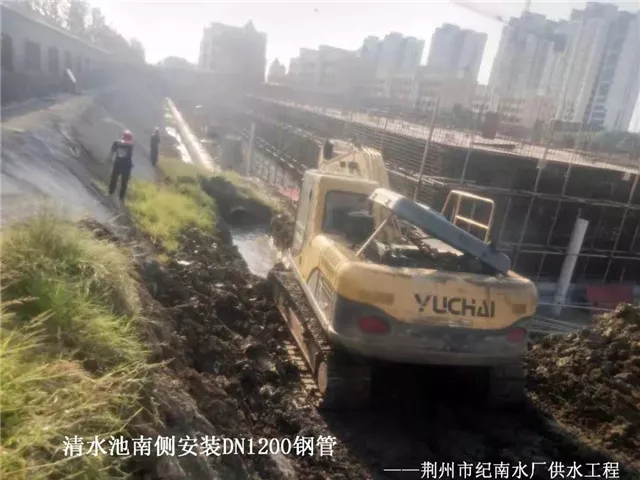 該工程分兩段施工,一段是漢宜高鐵至引江濟漢渠。2月27日開工建設(shè),工程造價767萬元,安裝DN600mm球管長約3000米;另一段是景明觀路至漢宜高速路。4月10日開工,工程造價696.83萬元,安裝DN600mm球管長約2000米。工程主要服務(wù)海子湖路沿線用戶和紀(jì)南文旅新區(qū)用水,隨道路建設(shè)進度逐步推進,8月份的工程進度分別為85%和70%。