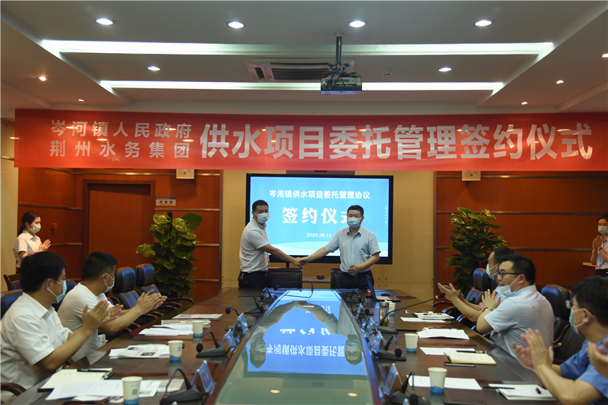 儀式由集團(tuán)公司副總經(jīng)理葛世玉主持。岑河鎮(zhèn)鎮(zhèn)委副書記楊浩、荊州水務(wù)集團(tuán)常務(wù)副總經(jīng)理唐志國,代表雙方正式簽訂供水托管協(xié)議。