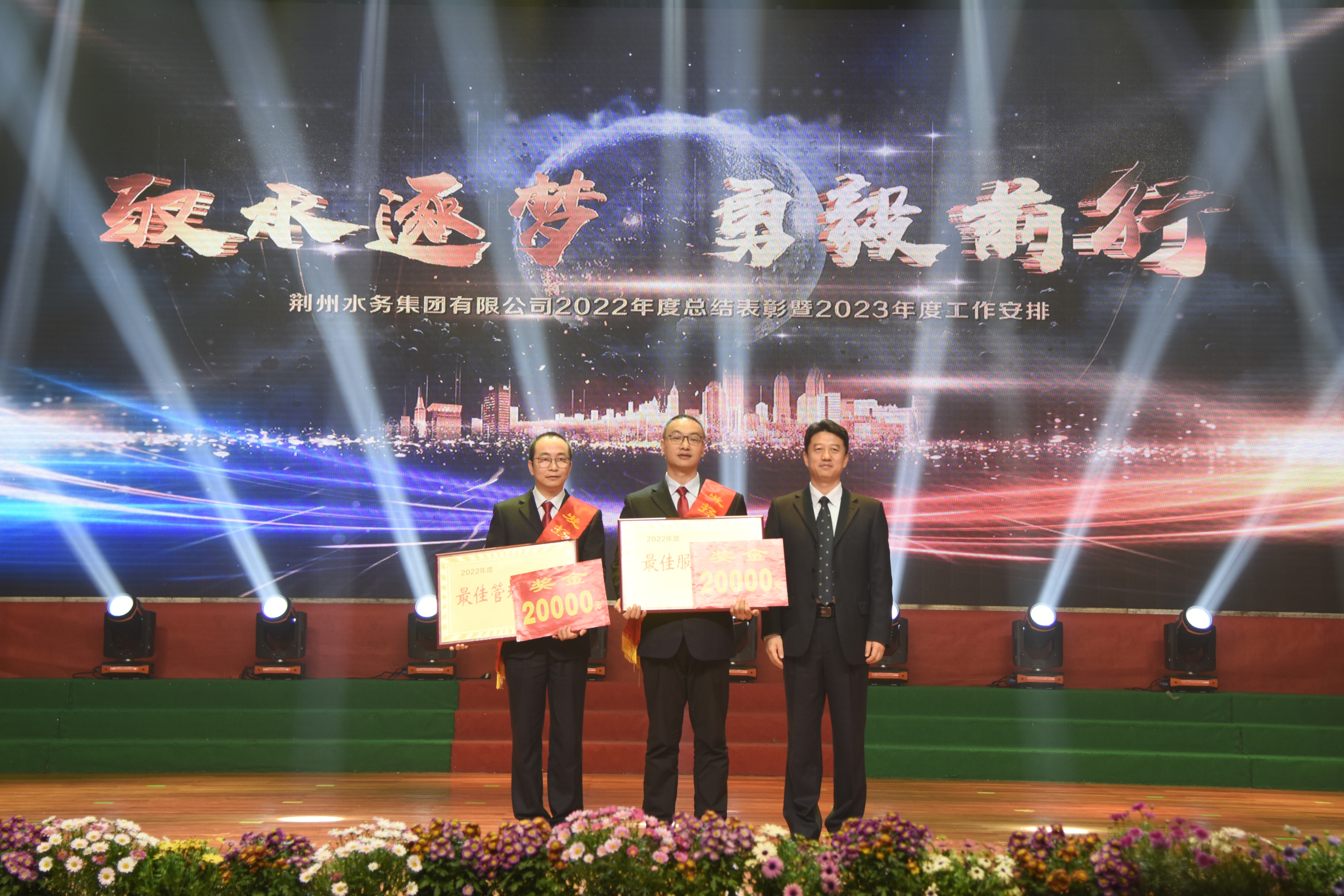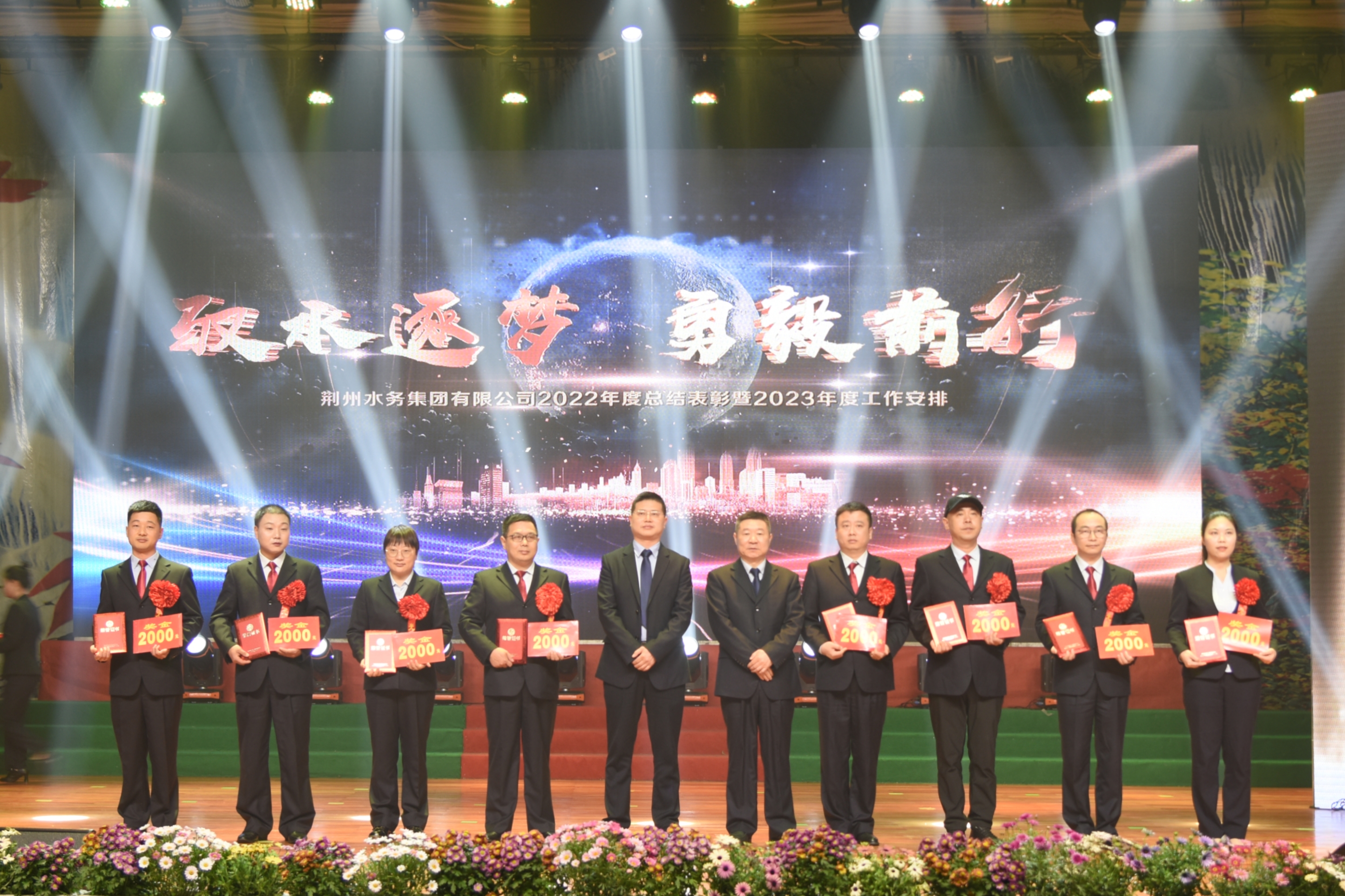 2023年3月8日,荊州水務(wù)集團2022年度總結(jié)表彰暨2023年度工作安排大會在職工活動中心隆重舉行。來自湖北銀龍水務(wù)集團有限公司、新洲長源供水有限公司、漢川銀龍水務(wù)有限公司、荊州中水環(huán)保有限公司、江陵銀龍水務(wù)有限公司、公安銀龍水務(wù)有限公司、石首銀龍水務(wù)有限公司的領(lǐng)導和嘉賓,以及公司全體干部職工600余人參加大會。