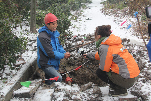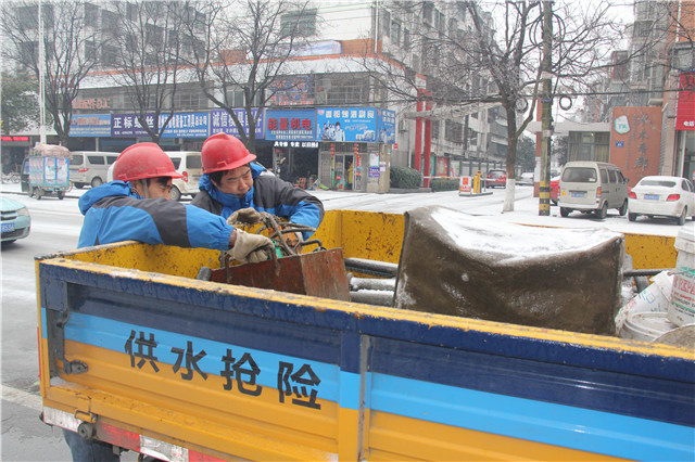 完成工商局宿舍樓的維修任務(wù)后,管網(wǎng)搶修隊(duì)又立即趕赴東方大道,為那里的一處突發(fā)故障進(jìn)行搶修。迎著滿天的冰雪,搶修師傅們沒有叫苦和累,而是從容應(yīng)對(duì)每一起應(yīng)急任務(wù)。搶修員黃忠祥表示,越是這種天氣,越是考驗(yàn)城市供水人,盡管自己辛苦一點(diǎn),只要看到用戶家家有水,心里就會(huì)很暖和。