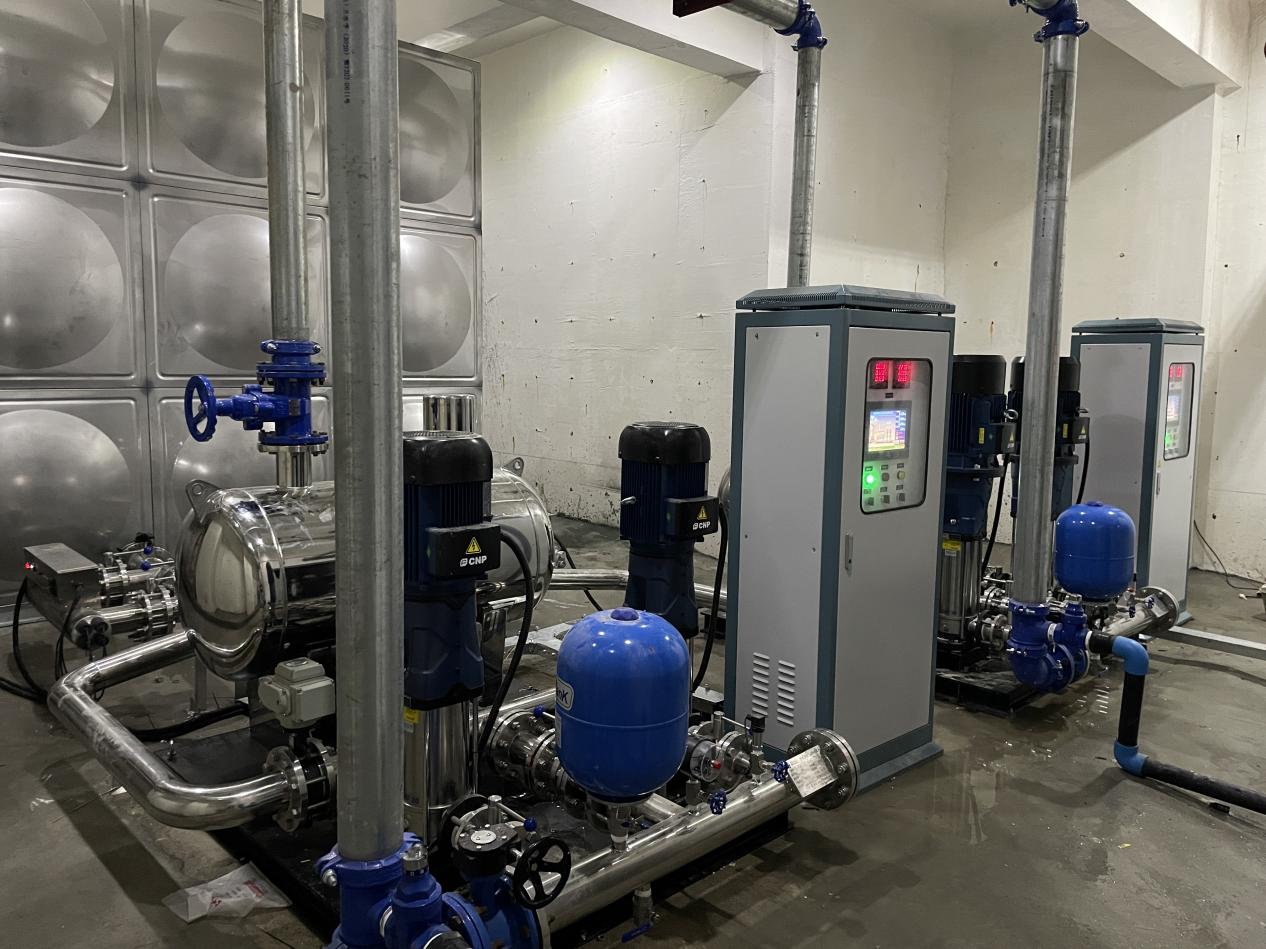 隨著城市的高樓層建筑的逐年增加,供水需求也隨之增加,罐式無(wú)負(fù)壓供水設(shè)備僅靠穩(wěn)流罐的容積,蓄水能力有限,在市政進(jìn)水壓力長(zhǎng)期波動(dòng)或者用水高峰期持續(xù)時(shí)間較長(zhǎng)等情況下,設(shè)備也會(huì)因進(jìn)水量不足進(jìn)行缺水保護(hù),停止工作。因此,泉潔公司考慮到用戶的用水需求,組織研發(fā)專班,歷經(jīng)3個(gè)月成功研發(fā)出了箱式無(wú)負(fù)壓供水設(shè)備,其運(yùn)用水箱調(diào)理補(bǔ)償,當(dāng)市政管網(wǎng)壓力缺乏時(shí),從水箱取水彌補(bǔ)管網(wǎng)供水的不足,成為緩解高峰期供水問(wèn)題的首要之選。