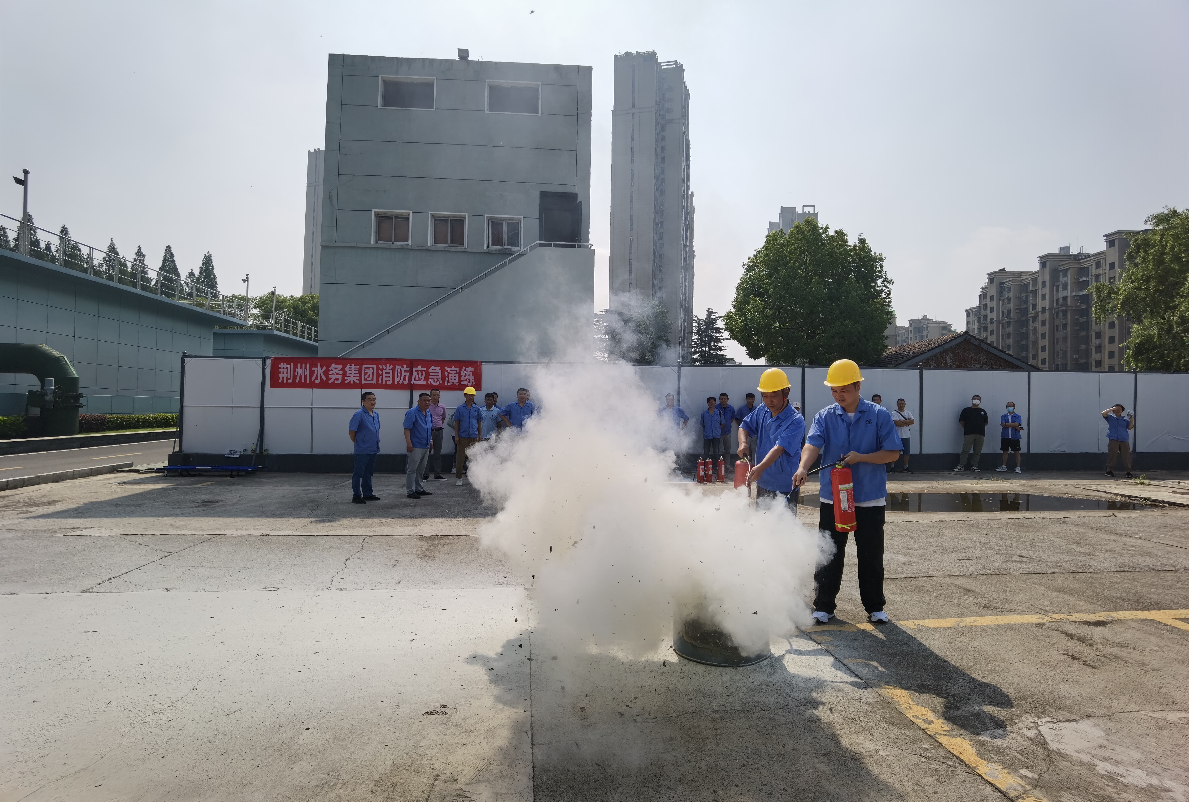 原來,這驚險一幕是荊州水務(wù)集團(tuán)南湖水廠的年度例行漏氯應(yīng)急演練。為更好開展全國“安全生產(chǎn)月”活動,荊州水務(wù)集團(tuán)在南湖水廠開展了2023年安全生產(chǎn)綜合演練活動。本次演練通過模擬氯氣泄漏、突發(fā)火災(zāi)、源水污染等突發(fā)事件的應(yīng)急搶險,檢驗制水廠安全生產(chǎn)綜合應(yīng)急搶險協(xié)同配合作戰(zhàn)能力。在整個演練過程中,工作人員沉著冷靜、按部就班、一氣呵成,充分體現(xiàn)了水廠工作人員在突發(fā)險情面前處驚不變的應(yīng)急反應(yīng)能力和扎實過硬的應(yīng)急處置技能。