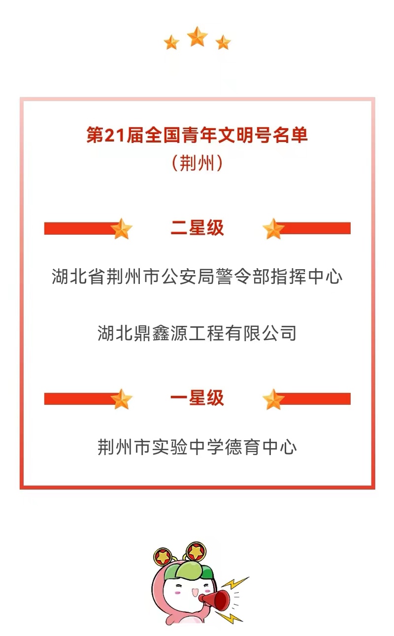 9月19日,共青團(tuán)中央、最高人民法院、國家發(fā)展改革委等23家單位聯(lián)合印發(fā)《關(guān)于命名第21屆全國青年文明號并進(jìn)行星級認(rèn)定的決定》。湖北鼎鑫源工程有限公司喜獲第21屆“二星級全國青年文明號”。