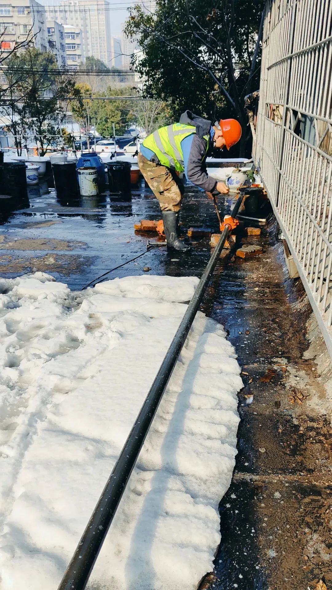此時(shí),園林北路也有一群忙碌的藍(lán)色身影,怡景園旁邊防控宿舍反映低壓無(wú)水,為保障居民安心過(guò)年,搶修員們已在這里探測(cè)管線(xiàn)尋找原因忙碌了一上午,最終決定采取微型管道改造,雖然天氣寒冷,可大家干得滿(mǎn)頭大汗,下午1點(diǎn)鐘完成施工,看著水龍頭噴涌出的自來(lái)水,用戶(hù)開(kāi)心得不住道謝。