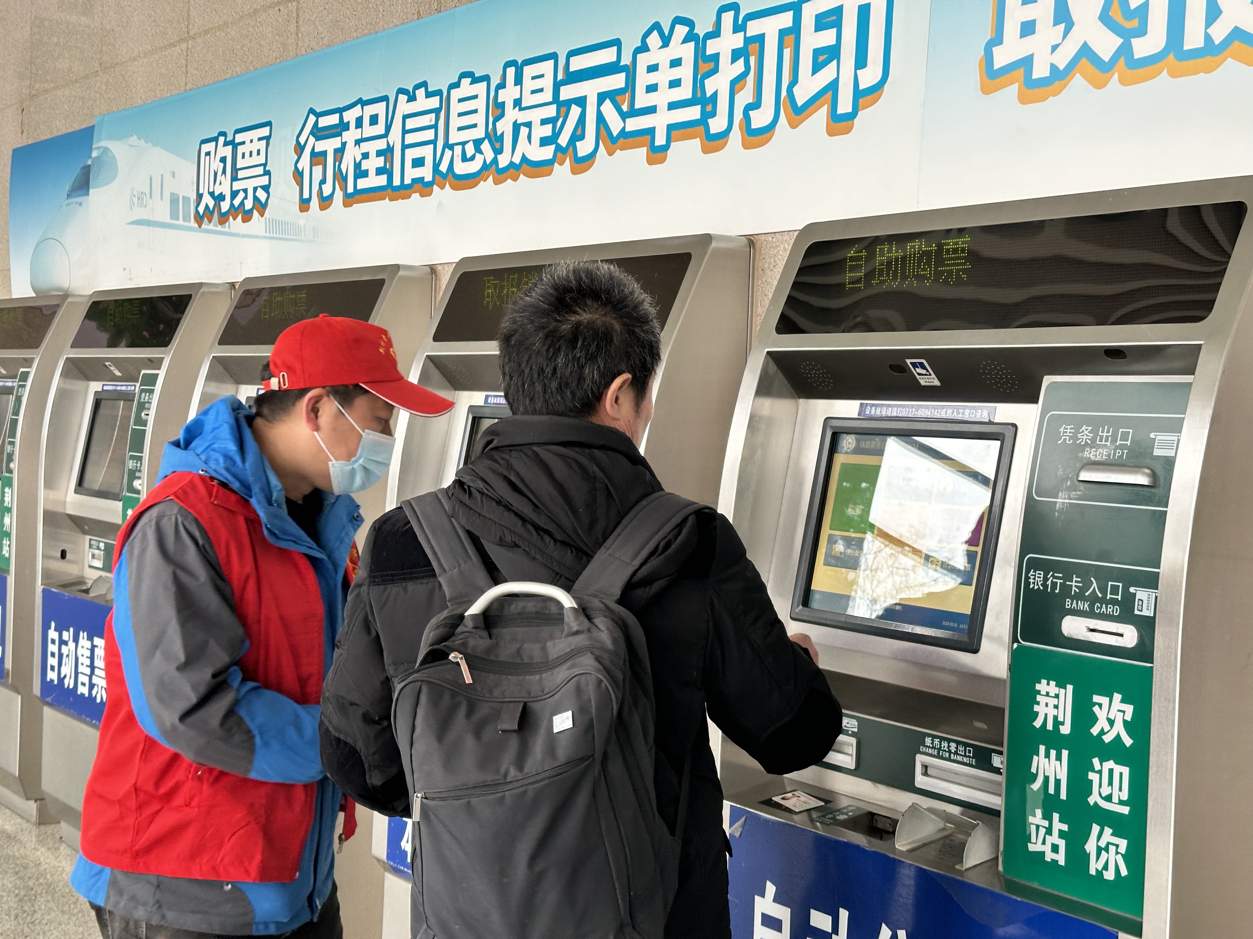 “請(qǐng)問(wèn)車(chē)票在哪買(mǎi)啊?我答應(yīng)了家人要趕回家吃晚飯!”看著大哥焦急萬(wàn)分的模樣,荊水志愿者趕緊帶著這位大哥走到自動(dòng)售票機(jī)處,耐心協(xié)助他買(mǎi)票,拿到票的那一刻,大哥臉上終于露出開(kāi)心的笑容“太好了,可以按時(shí)和家人們團(tuán)聚了!謝謝你!”