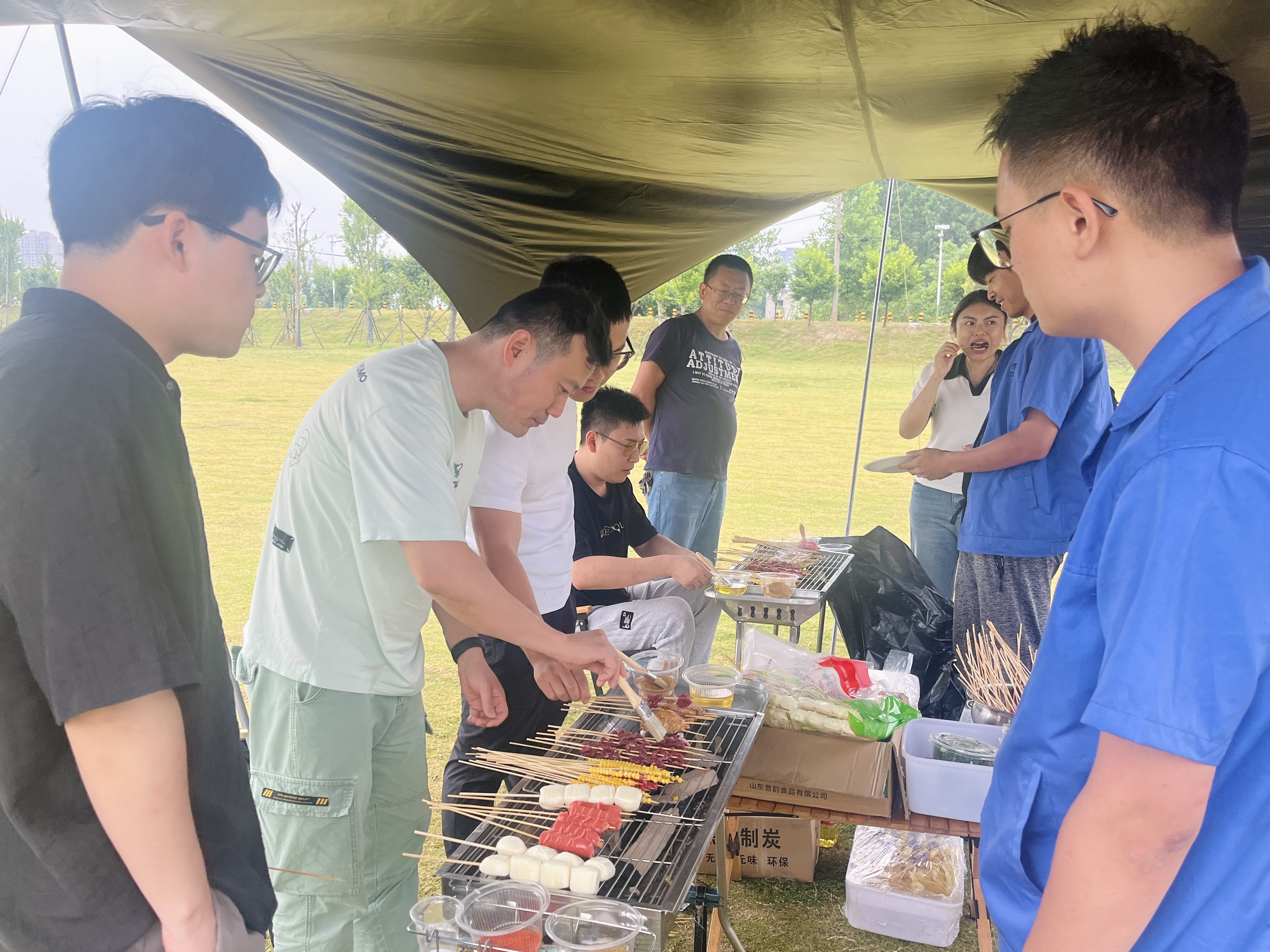 燒烤活動開始前,大家齊心協(xié)力,合理分工,準備著燒烤的食材和用品。有的準備原料,有的串串兒,有的準備燒烤用具……每一道工序都特別認真。看著這些飄香四溢的美食,享受自己動手燒烤的樂趣,減壓又有美好的成就感。