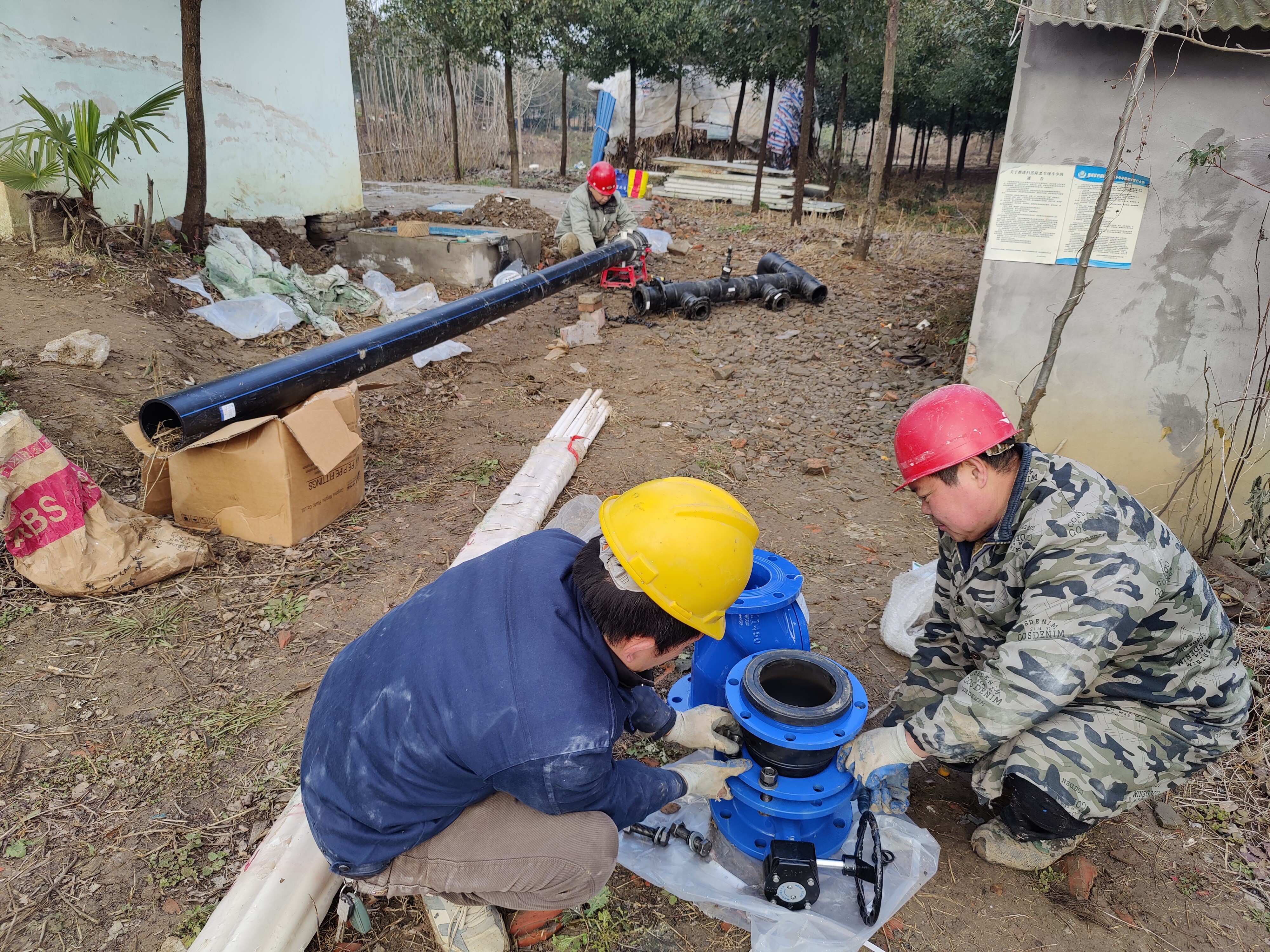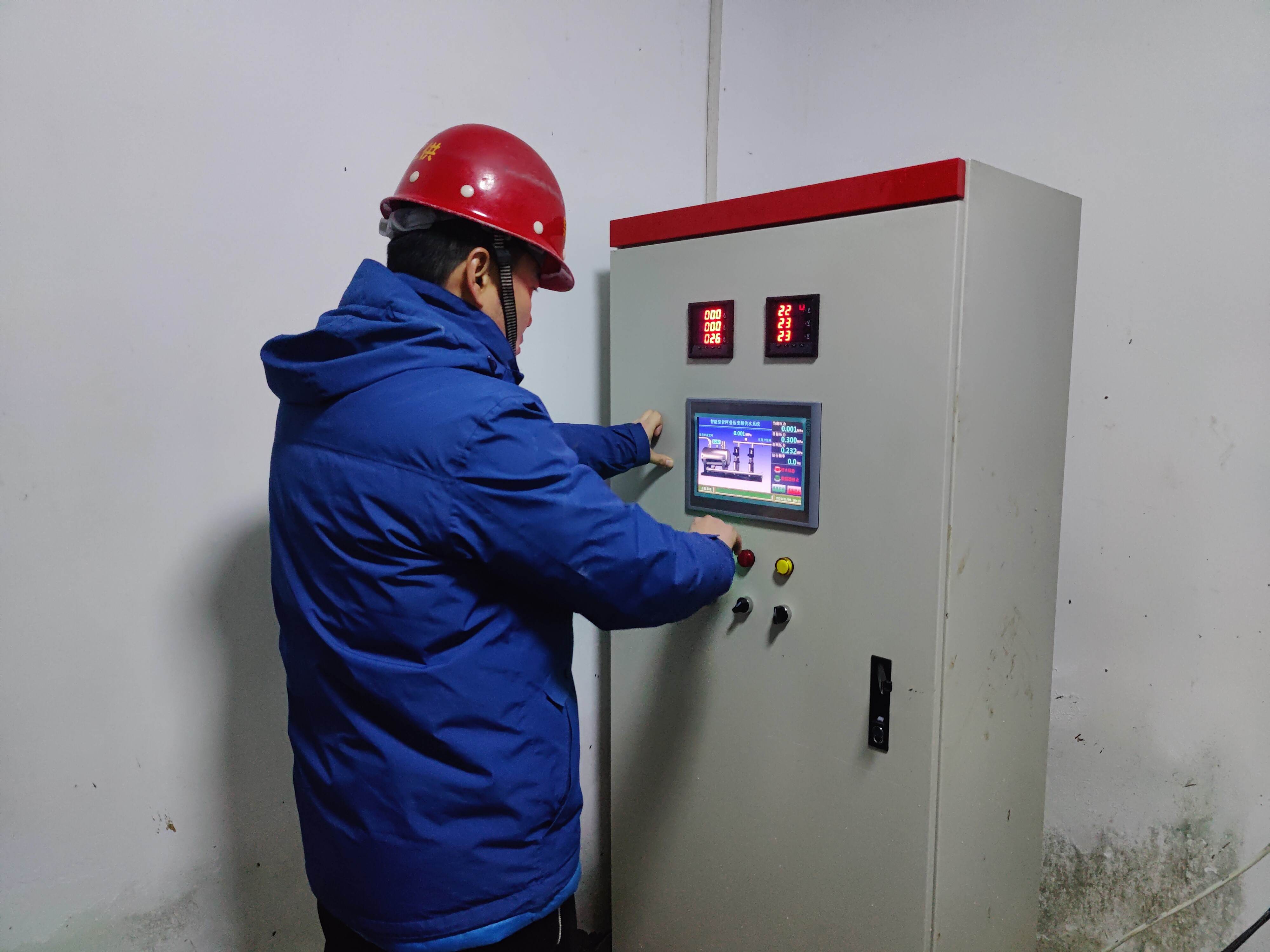 兵貴神速,在領(lǐng)導(dǎo)作出指示后,泉潔二次供水公司當(dāng)日進(jìn)行設(shè)備采購,并于1月3日開始進(jìn)行設(shè)備改造工作。就在昨天,川店鎮(zhèn)李場村下了一天的雨,當(dāng)日趕到現(xiàn)場時,地上滿是泥濘,狂風(fēng)呼呼作響。技術(shù)員們有的是在室外的寒風(fēng)中埋頭苦干、有的是擠在狹小的泵房內(nèi)揮灑汗水,就在這樣艱苦的環(huán)境中,工作一直持續(xù)到夜晚。