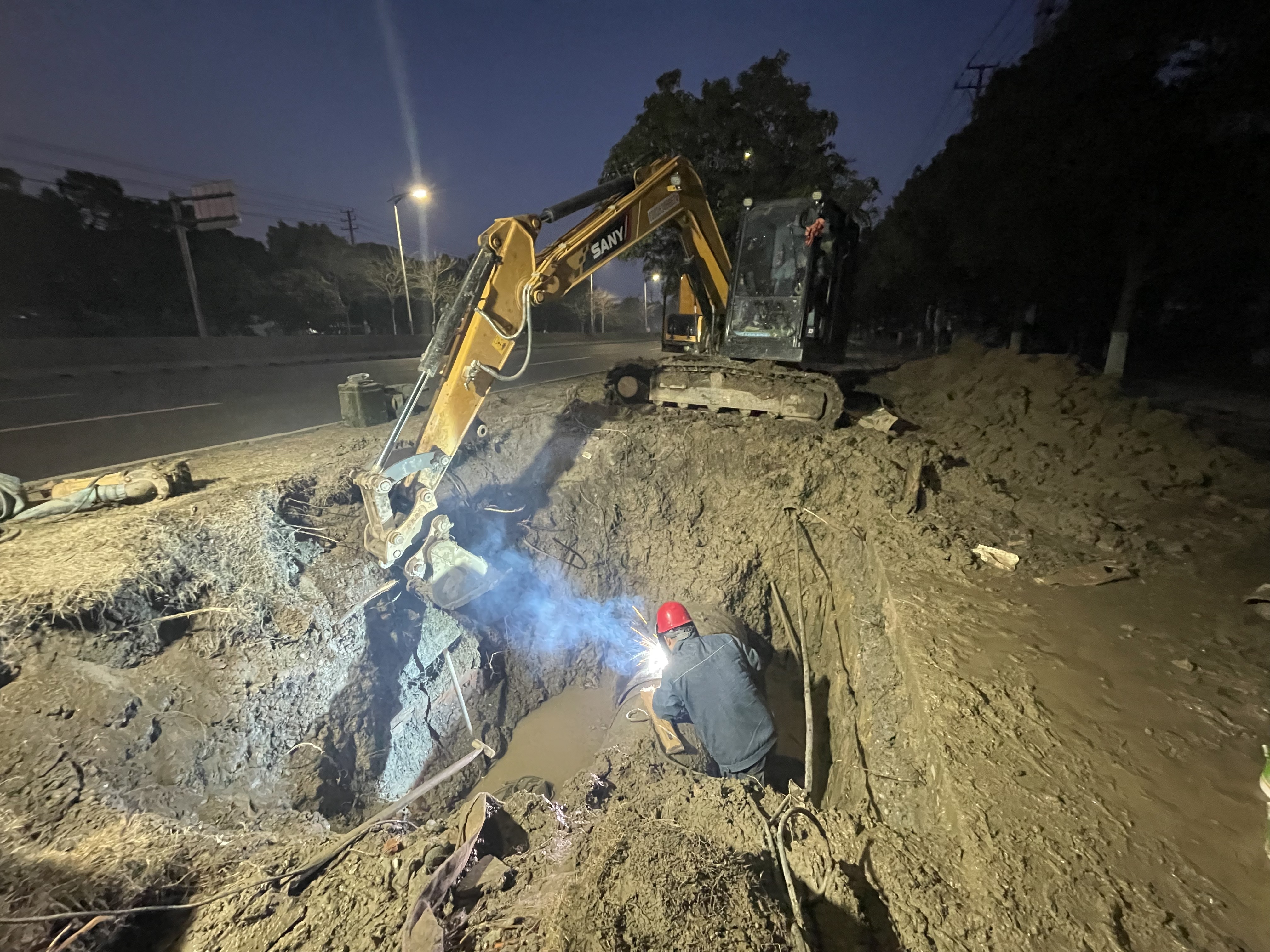 春節(jié)期間,管網(wǎng)部堅(jiān)持“小修不過夜,大修連續(xù)干”的原則,確保供水問題第一時(shí)間得到解決。1月29日正月初一下午,管網(wǎng)部值班干部黃凱亮接到報(bào)修電話,位于沙市區(qū)東方大道湖北志興鋼結(jié)構(gòu)有限公司門前的DN600供水主管突然爆管,值班干部立即帶領(lǐng)搶修人員和設(shè)備趕赴現(xiàn)場進(jìn)行搶修,經(jīng)過連續(xù)6小時(shí)的緊張搶修,至晚上9點(diǎn)搶修完畢,東方大道全線恢復(fù)供水,周邊居民生活基本未受停水影響。正月初二上午,接到德馨園小區(qū)用戶反映水壓偏低的報(bào)修電話后,管網(wǎng)部搶修人員迅速趕到現(xiàn)場,經(jīng)過仔細(xì)排查,發(fā)現(xiàn)是一處地下DN100管道漏水。搶修人員冒著嚴(yán)寒,連續(xù)奮戰(zhàn)4個(gè)多小時(shí),終于修復(fù)了漏點(diǎn),恢復(fù)了正常供水。據(jù)悉,春節(jié)節(jié)日假期期間,管網(wǎng)部搶修隊(duì)共接到供水報(bào)修電話50多個(gè),處理爆管壓低各種搶修任務(wù)30多處,都以優(yōu)質(zhì)周到的服務(wù)得到了市民群眾的贊許和肯定,贏得了用戶的一致好評。