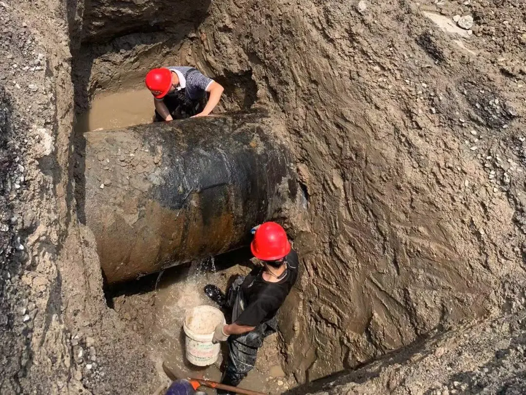 由于爆管位置特殊,管徑大,開挖作業(yè)坑基面積大,且周圍環(huán)境復(fù)雜,給搶修工作帶來了極大的困難。搶修人員不畏艱難,連續(xù)施工不停歇,在現(xiàn)場(chǎng)爭(zhēng)分奪秒地進(jìn)行搶修。最終于4月20日下午2點(diǎn)前完成了全部搶修任務(wù),僅僅只停水4個(gè)小時(shí)就恢復(fù)了供水,創(chuàng)造了維修同口徑管道用時(shí)最短的記錄。