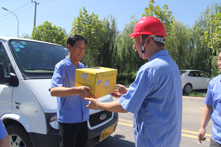 7月28日,集團(tuán)公司董事長(zhǎng)袁柏華一行頂著炎炎烈日,為奮戰(zhàn)在窗口、生產(chǎn)、施工崗位的一線員工送去消暑飲料、綠豆、白糖和防暑藥品。