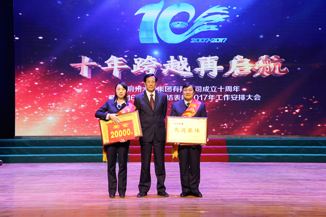 會(huì)上,荊州水務(wù)集團(tuán)黨委書記、總經(jīng)理張勤對(duì)十年奮斗歷史做了精彩回顧。她說(shuō),感謝市委市政府和中國(guó)水務(wù)集團(tuán)的關(guān)懷支持,感謝董事會(huì)和經(jīng)營(yíng)層對(duì)企業(yè)的科學(xué)指導(dǎo),感謝全體職工的辛勤付出。十年間,企業(yè)從落后與虧損、陳舊與困局中走來(lái),打破舊的體制,建立了全新的現(xiàn)代化管理制度;供水人口從50萬(wàn)增長(zhǎng)至百余萬(wàn),供水范圍從70平方公里,增加至100平方公里,年售水量從5千萬(wàn)噸增漲至7千萬(wàn)噸……今天,站在時(shí)代的新起點(diǎn)上,700多名荊水人已經(jīng)整裝待發(fā),將用自己的雙手去書寫未來(lái)與理想!對(duì)2016年的工作,她用五個(gè)關(guān)鍵詞予以總結(jié):沖刺、博弈、極致、奉獻(xiàn)、上善。面對(duì)2017年,張總同樣提出五個(gè)發(fā)展關(guān)鍵詞:信念、專注、拓展、占領(lǐng)、精準(zhǔn)。