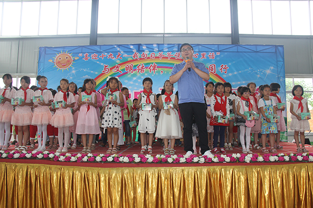 上午8點(diǎn)30分,九店小學(xué)的“六一”慶?;顒訙?zhǔn)時開始。集團(tuán)公司總經(jīng)理張勤、總經(jīng)理助理葛世玉都親臨活動現(xiàn)場,給孩子送上貼心的祝福。在給留守兒童過生日的環(huán)節(jié)中,集團(tuán)公司工作人員帶來的禮物讓孩子們驚喜不已,連連發(fā)出歡呼。在發(fā)放禮物時,工作人員一并為孩子們送上了節(jié)日的祝福,并且勉勵他們好好學(xué)習(xí),早日成長為棟梁之才。接過禮物時孩子們都非常禮貌的說著謝謝,并將禮物緊緊抱在胸前,喜愛之情溢于言表。隨后,集團(tuán)公司工作人又給上半年過生日的近100名小學(xué)生送上了生日蛋糕。收到這份平時難得一見的生日禮物,孩子們都露出了開心的笑容。集團(tuán)公司總經(jīng)理助理葛世玉則代表企業(yè)對孩子們送上了節(jié)日的寄語:“希望你們珍惜今天的學(xué)習(xí)環(huán)境和條件,好好學(xué)習(xí)知識,培養(yǎng)好的品行與習(xí)慣,學(xué)會團(tuán)隊(duì)協(xié)作,早日成為改變世界的人才。祝大家過一個快樂的‘六一’兒童節(jié)!”同時他也介紹,集團(tuán)公司長年堅(jiān)持社會公益活動,還開展了“進(jìn)區(qū)入戶”、“百戶幫扶”、“三微服務(wù)”等各種義務(wù)活動。希望社會更多愛心人士也能加入到公益活動中來,與集團(tuán)公司、《江漢風(fēng)》攜手,帶給孩子們和需要關(guān)懷的人群更多的幫助。