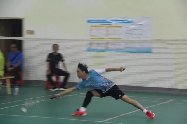 此刻,站在賽場上挑戰(zhàn)武漢隊的,正是獲得過多次荊州市非職業(yè)選手羽毛球比賽冠軍的黃昆、王玉宏這一對黃金搭檔。只見對方向黃昆左手發(fā)來一個刁鉆的平快球,黃昆腳步冷靜,不慌不忙的轉(zhuǎn)身單腳起跳,再左手將球猛地扣回,多年苦練的爆發(fā)力與精湛球技在一瞬間被發(fā)揮得淋漓盡致。而他的老搭檔王玉宏更是將十余年的球技心得運用得爐火純青,眨眼間就將大力扣球與網(wǎng)前小球快速切換,打得對手措手不及,觀眾不由爆發(fā)出陣陣掌聲。