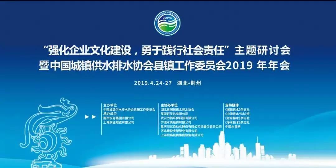 春暖花開萬物并秀,群賢畢至古城生輝。4月24日至4月27日,由中國水協(xié)縣鎮(zhèn)工作委員會主辦,湖北省供排水協(xié)會協(xié)辦,荊州水務集團有限公司、上海展業(yè)展覽公司等多家單位共同承辦的中國水協(xié)縣鎮(zhèn)工作委員會“強化企業(yè)文化建設,勇于踐行社會責任”主題研討會暨2019年年會在湖北省荊州市隆重召開。來自全國各地水協(xié)、縣鎮(zhèn)水務企業(yè)、專業(yè)設備生產供應廠商600多名代表齊聚綠地鉑酈酒店,就如何進一步強化企業(yè)文化建設,提升縣鎮(zhèn)供排水企業(yè)管理水平,促進節(jié)能減排、供水安全,相互交流和分享經驗。