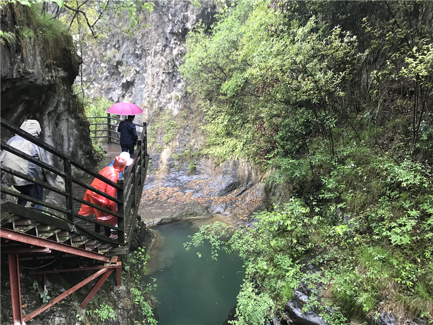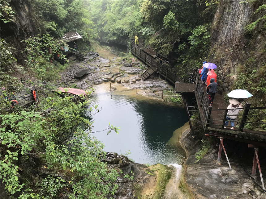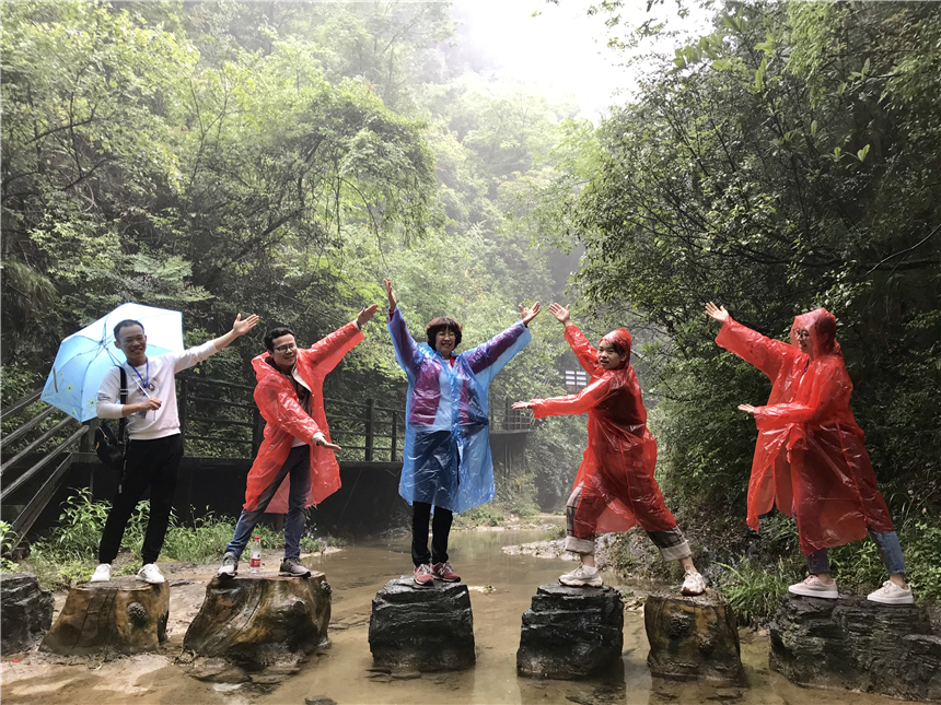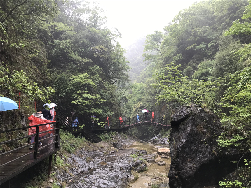 到達景區(qū)后,大家進行了短暫的調(diào)整,除卻舟車的疲憊后就開始了登山。雨淅淅瀝瀝,可絲毫沒有影響大家的熱情。一邊爬山一邊欣賞美麗的風景,心中的煩惱和壓力在這一刻得到釋放。峽谷內(nèi),西溝十八潭,潭潭相連;碧峰銀瀑,環(huán)繞其中,讓人心曠神怡,流連忘返。