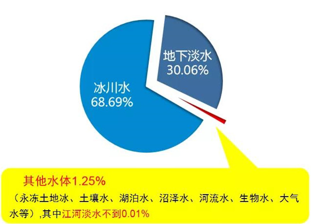地球表面海洋咸水資源占據(jù)97.47%,淡水資源僅占2.53%。在有限的淡水資源中,我們通常人類可以真正直接利用的地下水、湖泊淡水和河床水,三者總和占比不到總淡水資源量的0.01%。