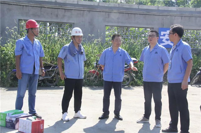 在城北新區(qū)紀南水廠施工現(xiàn)場,副總經(jīng)理葛世玉、總經(jīng)理助理曾兵聽取了項目經(jīng)理黃凱亮對工程建設情況的匯報,葛世玉強調(diào)了高溫期間,一定要做好施工人員的防暑降溫工作,要采取避峰作業(yè)等方式,在確保人員安全的情況下大力推進重點工程建設,曾兵對在場建設人員進行慰問的同時,再次提醒了施工人員一定要注意人身安全。