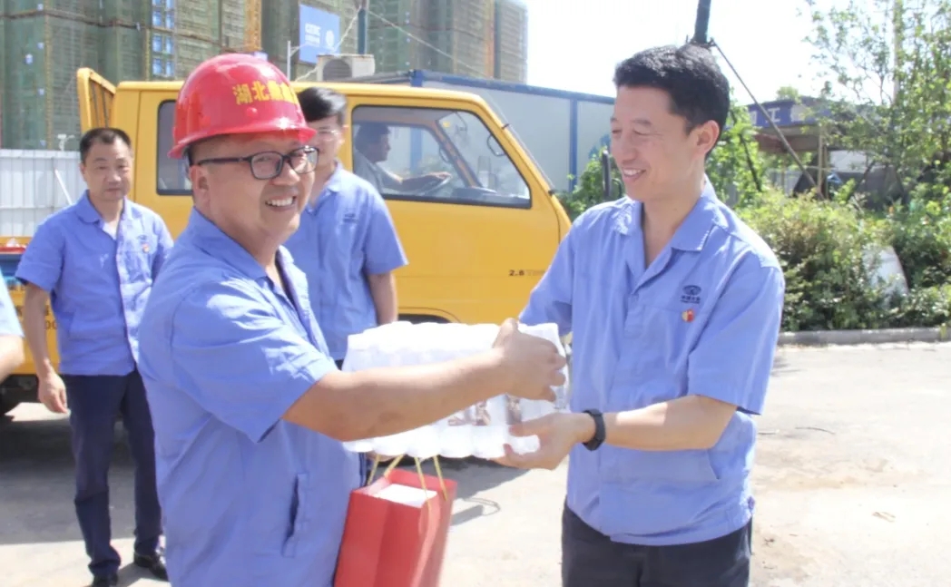 在管網(wǎng)施工現(xiàn)場(chǎng)和紀(jì)南水廠建設(shè)工地現(xiàn)場(chǎng),集團(tuán)公司黨委書(shū)記、總經(jīng)理石明望將防暑降溫物品送到職工手中,親切詢問(wèn)他們的工作和生活情況,并對(duì)他們的辛勤工作表示敬意和感謝,叮囑大家做好錯(cuò)峰作業(yè),注意高溫天氣下的自我防護(hù)。