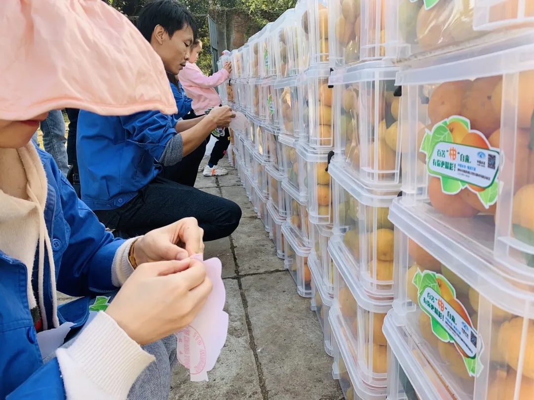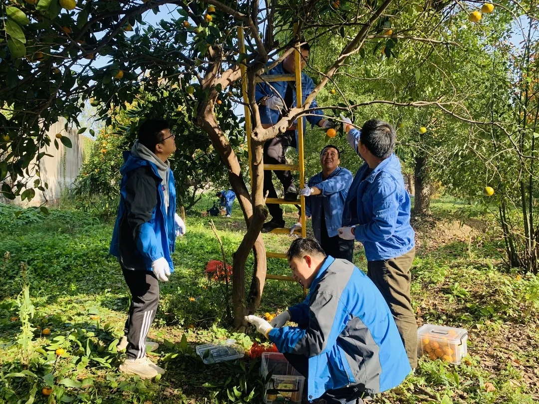 大家被分為標(biāo)簽組、采摘組和裝果組。采摘現(xiàn)場(chǎng),個(gè)個(gè)情緒高漲,說(shuō)干就干!大家穿梭在一棵棵橘子樹(shù)中,貼標(biāo)、剪枝、運(yùn)輸、裝果一氣呵成,三個(gè)一組五個(gè)一群,攜手配合……忙碌的身影,歡樂(lè)的笑聲,為初冬的果園增添了無(wú)限生機(jī)。